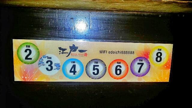 Edo Ichi located in Taman Tyng, just next to Tyng Hotel. You will not miss it by a giant signboard outside the restaurant. The atmosphere is nice with dim light during the night. Great place for hang out and chill. They also have the sushi belt machine like most Japanese restaurant in KK. I've been here for twice now. Each time i come all the table was almost fully occupied. Their sushi taste good and fresh. Can't really make a comparison as i haven't visit other japanese restaurant here. For the price, i find it quite reasonable. Free wifi too.